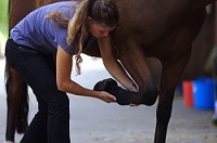 - Palpation (Abtasten des gesamten Pferdes auf z. B. Verspannungen, Wärme, Schmerzhaftigkeit, Muskelverletzungen, etc.)